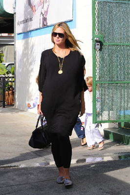 6-السعادة سر الأناقة هذا ما تقوله هيلاري داف التى أطلت على معجبيها ببنطلون أسود وبلوزة بصدر رصاصى فاتح فضفاضة جدا لاخفاء ملامح حملها البارزة.