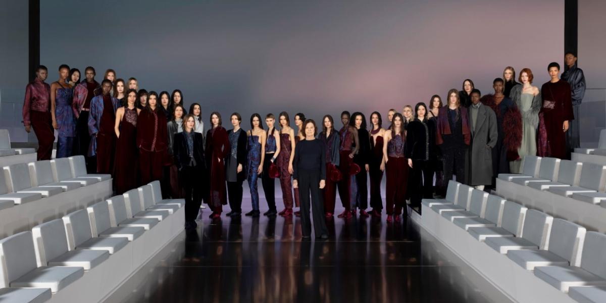 تغدو السيلويت ناعمة، وإن بقيت محدّدة المعالم، مشغولة بعناية ومتحرّرة منها في آنٍ واحد. توازنٌ طبيعي واضح، يرتكز إلى خامات ملموسة الحضور مثل الفلانيل، الكشمير، الكريب والمخمل، في توليفاتٍ مدروسة. تتجرّد السترات تمامًا من الحشوات؛ وتحتضن المعاطف والبلاوزونات الجسد ببنيةٍ سخية ومفكّكة؛ فيما تنساب السراويل بطابعٍ ذكوري لتلامس الأرض، وتكشف البلوفرات لمحاتٍ من القمصان تحتها.