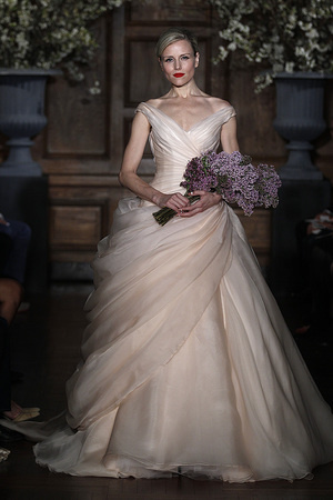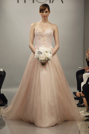 إنه لون الأنوثة والرومانسية ... إنه اللون الزهري الذي أثبت حضوره بقوة بين مجموعات فساتين الزفاف لربيع 2014، التي أطلقت مؤخراً في أسبوع الموضة النيويوركي للعرائس.