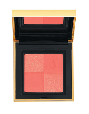 أبرزي وأنيري ملامح الوجه بـ”ديور سكين فلاش- أبريكوت غلو” Dior Skinflash- Apricot Glow، ثم اصقلي الخدين ببودرة “إيف سان لوران بلاش رايديانس 02”