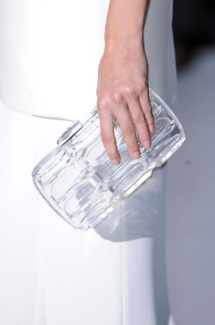 من خلال جولاتنا في منصات عروض أزياء الملابس الجاهزة  لربيع وصيف 2013، اخترنا لك عزيزتي العروس أكسسوارات بسيطة جدا وناعمة، يمكنك أن تختاري منها ما يناسب فستان زفافك، كحقيبة اليد المميزة من Alberta Ferreti أوحذاء Burberry Prorsum.