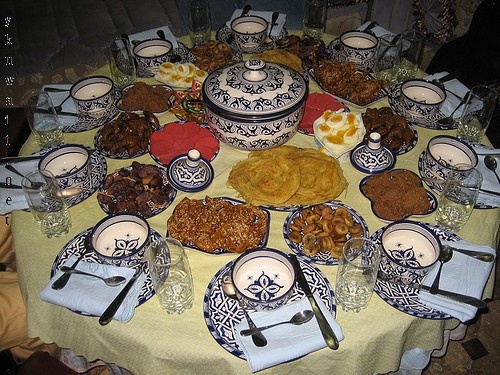 ارتداء اللباس الفولكلوري: إن استقبال الضيوف باللباس الفضفاض بحسب البلد كالجلباب أوالعباءة الشرقية ( الأردنية ،الدمشقية ،اللبنانية، الفلسطينية ...) ، الثوب الخليجي، الجلابية المصرية، القفطان والتقشيطة المغربية، السفساري أي العباءة التونسية، يتيح للمضيفة التحرك بحرية بين الضيوف ويكمل الأجواء الرمضانية. ولا باس إذا طلبنا من ضيوفنا ارتداء اللباس الفولكلوري الفضفاض عندما نراه مناسباً، بما أنهم يتقيّدون بارتداء الملابس الرسمية في الأعراس والمناسبات الخاصة.