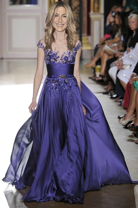 لم تكد تمر ثواني على إعلان خطوبة جنيفر أنيستون وجاستين ثيرو، حتى بدأ التفكير، أي فستان زفاف ستختاره جنيفر؟ كثير من العرائس التي تتزوج لثاني مرة، تعود لاختيار الأبيض مرة أخرى، إلا أننا لم نستطع تصور جنيفر بالأبيض، لذا اتجه تفكيرنا لاختيار فساتين من هوت كوتير خريف 2012، وكان أول من فرض نفسه على تفكيرنا، هو إيلي صعب، والذي تتناسب تصميماته مع اختيارات أنيستون، وذوقها المعروف.