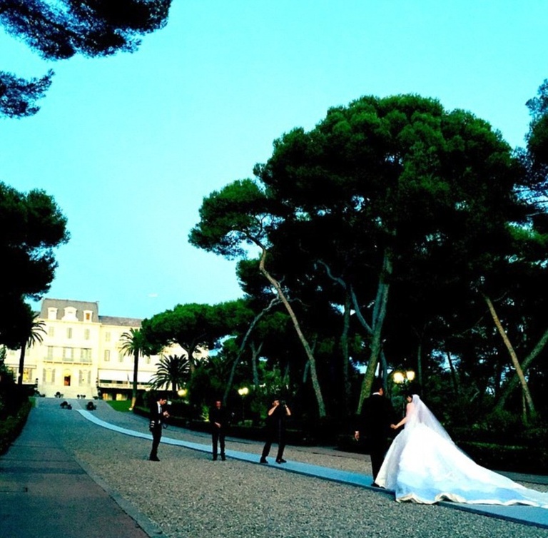 الزفاف أقيم في فندق " Hotel Du Cap-Eden-Roc" بمدينة أنتيب بجنوب فرنسا، وهو من أرقى الفنادق إذ يبلغ سعر الإقامة فى ذلك الفندق 850 يورو لليلة الواحدة.