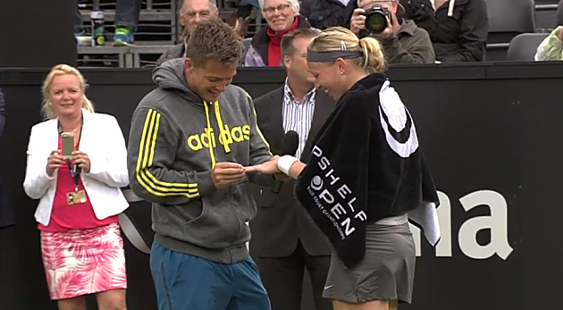 ما إن انتهت لاعبة التنس الهولندية Michaella Krajice مباراتها وفازت على منافستها يانا سيبيلوفا في الدور الأول لبطولة ايستبورن الدولية تحضيراً لبطولة ويمبلدون، حتى دخل حبيبها الالماني مارتن ايمريتش الى أرض الملعب وطلب يدها للزواج في جو مليء بالمشاعر الرقيقة والأحاسيس وسط الدموع الذي لم يستطع ان يسيطر عليها لحماسه وتوتره من جرّاء ما كان يقوم به.
