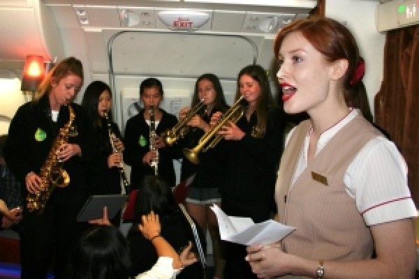 وما ساعد على إتمام طلب الزواج بطريقة رومنسية انه صادف أن كان على الرحلة فرقة موسيقية لكلية بارادين في نيوزيلندا، فحضر أفراد الطاقم منطقة الصالون الجوي في الطائرة، وتقدم ستيوارت بطلب يد حبيبته على أنغام الفرقة وأداء إحدى المضيفات الموهوبات أغنية لويس أرمسترونغ الشهيرة "يا له من عالم رائع"، وسط صيحات الفرح من الحضور وتصفيقهم.