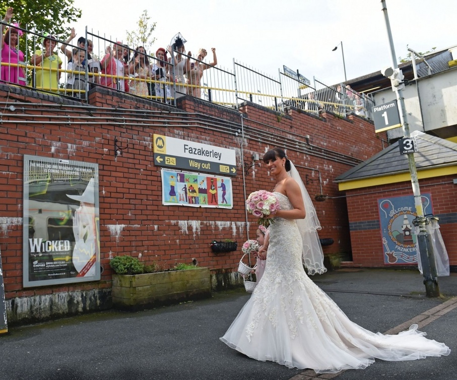 لم ترغب العروس Leanne Cole 34 عاماً بالذهاب الى حفل زفافها بسيارة فاخرة، فاختارت محطة القطار التي تقع بجانب منزلها حتى لا تتكلف كثيراً خصوصاً وأنها أرادت الإلتزام بالميزانية التي خصصتها مع زوجها Andrew Corkery لحفل زفافهما.