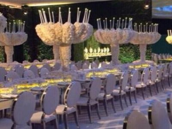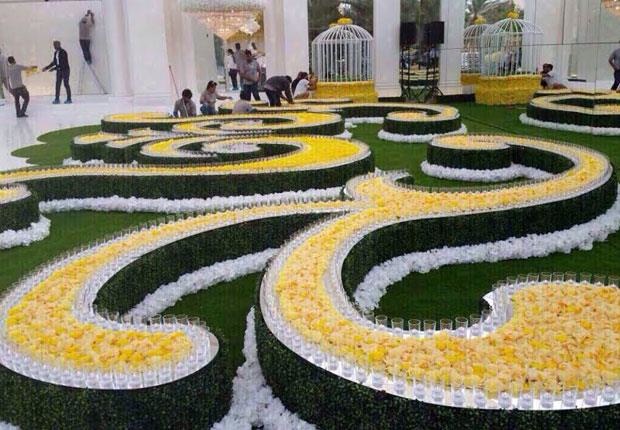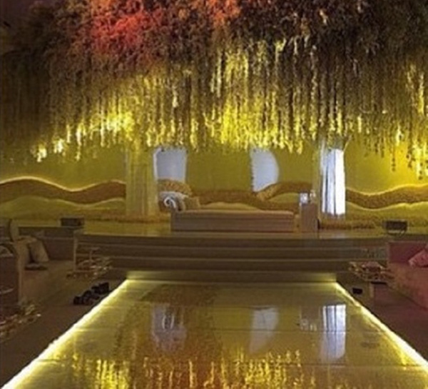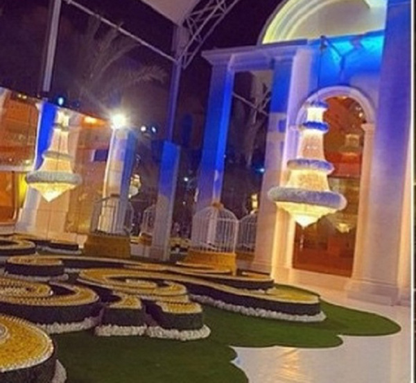 الحفل الذي وصف بالأسطوري بتفاصيل ديكوره وفخامة تفاصيله لفت انظار المدعوين الذين نشروا بعض الصور التي التقطت، وأكثر ما دهش الحضور هو توزيع خواتم من الماس على الحضور كهدايا تذكارية من الزفاف.