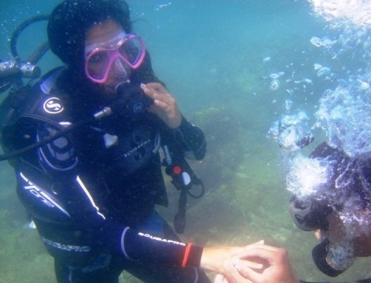 بالصور: لبناني يخطب حبيبته في أعماق البحار