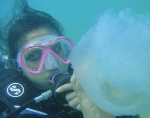 وفي اليوم  المحدد ارتدى عدنان ورانيا بدلة الغطس لمدة ساعة وربع الساعة، حيث تنقلا بين الاسماك وقناديل البحر التي لسعت يدي رانيا وعنقها، لكن فرحة المناسبة وجمالية المكان بالإضافة الى أهمية المناسبة انست العروس المستقبلية  وجعها !