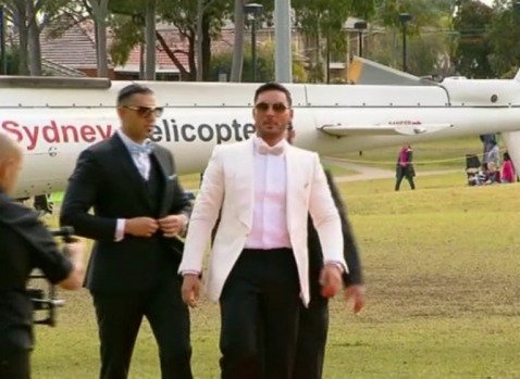 وذكر موقع australianlebanesenews ان العريس وصل مع فريقه عبر طائرة هيليكوبتر الى منتزه في اوبرن ليسير كنجوم السينما على سجادة حمراء، ترافقه عدسات الكاميرات، ثم توجه بسيارة فخمة وخلفه أسطول من السيارات الفخمة الى منزل يقع على شارع فرانسيس في ليدكوم حيث كانت تنتظره خطيبته.