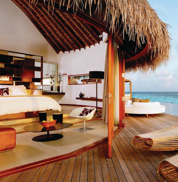1-W Retreat & Spa Maldives: يقع هذا المنتجع على جزيرة Fesdu في المالديف، والجناح الذي ننصح به هو “Ocean Haven” المطل مباشرة على المحيط، مع حوض سباحة خاص به فيع مقاعد جاكوزي ساخنة، حمام مطر خارجي أو rain shower، موقدة للشواء، أرضية زجاجية ترى من خلالها اسماك ومخلوقات المحيط، وغرفة ماستر في الهواء الطلق للنوم تحت النجوم، مع رؤية المحيط الهندي بدرجة 360 درجة. ويمكنكما التمتع بليلة شواء رائعة على الرمال وتذوق المشويات المميزة على الفحم وألذ الماكولات المحضرة في فرن التندوري أو على الطراز المنغولي.