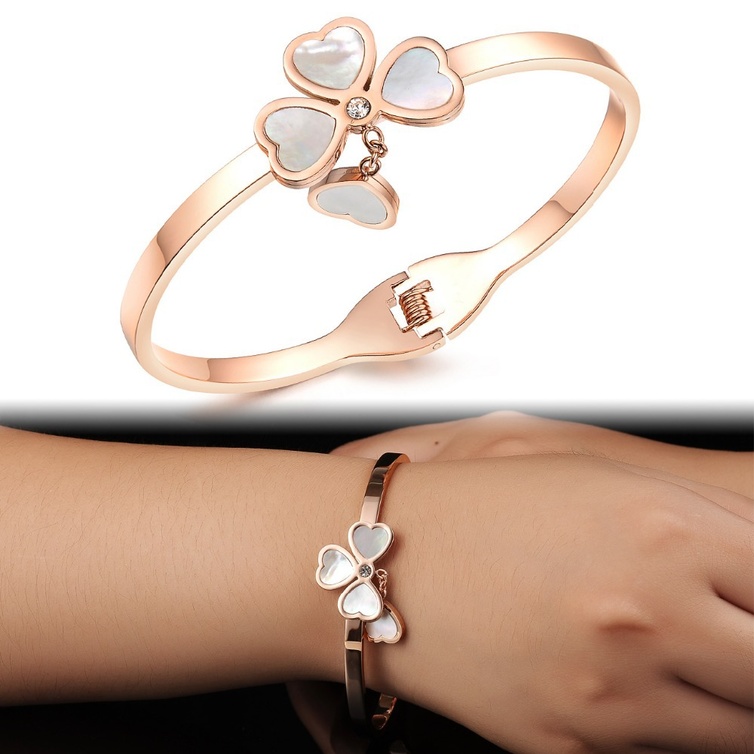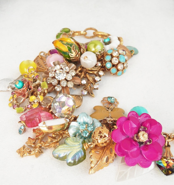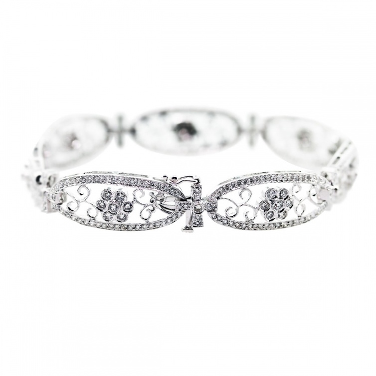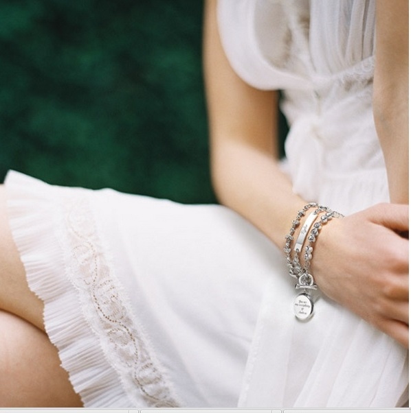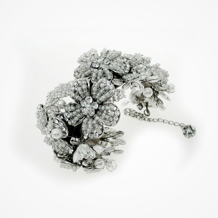 كما يمكنك الحصول أيضا على سوار ساحر ومثالي على شكل أزهار للعروس الرومانسية، وهذا السوار يشع بالأنوثة يتميز بتصميمه الأنيق من الأزهار المستوحى من التصاميم الفيكتورية مزين بالأحجار الكريمة الثمينة حيث يمكنك إستغلال وجهي القفل الخاص به بوضع صورة لكِ أو حرف أو جملة تفضلينها وللحصول على مظهر مثالي يمكنك إرتداء قلادة وأقراط مماثلة له.