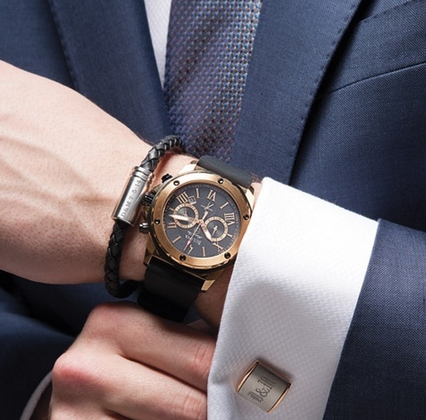 كما يمكنه إرتداء أزرار لأكمام القميص من الإستنالس ستيل منقوش عليها الأحرف الأولى من أسمه وتعتبر من أفضل الهدايا الملائمة للرجل.