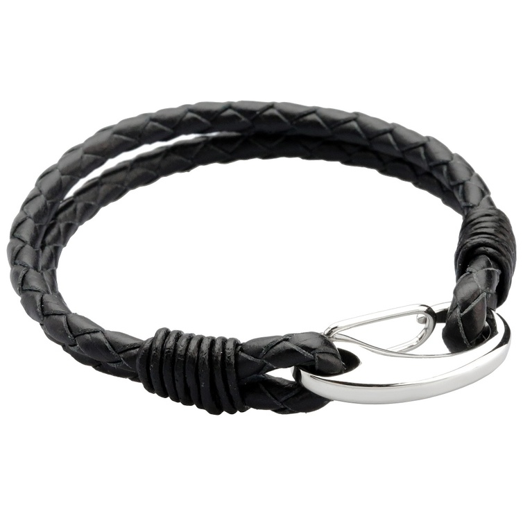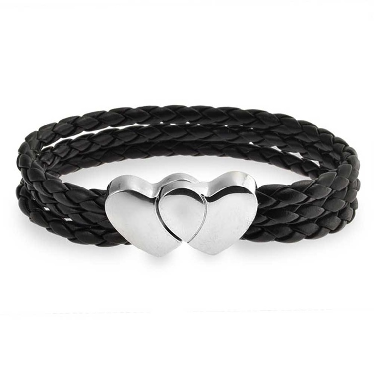 سوار من الجلد الأسود المضفر تعتبر هدية مثالية جدا للعريس يمكنه استخدامها كل يوم، كما يمكنك نقش حروف اسماكما الأولى أو موعد الزفاف، وهي عبارة عن حبل من الجلد المضفر مع إسطوانة من الإستنلس ستيل ,بتصميم أنيق ورائع ملائم ليوم الزفاف.