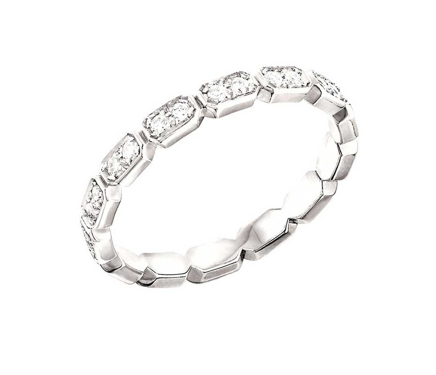بالإضافة إلى ذلك، تضم مختاراتنا أيضا خاتماً من "كارتييه Cartier" يطلق عليه إسم خاتم "الخلود Eternity". ترابط الفصوص الماسية المستطيلة فيما بينها بواسطة البلاتين جاء في تماسك وتناغم تام يعكس الحب الأبدي. يشكل هذا الخاتم الذي يرمز إلى الحب الخالد قطعة في غاية الجاذبية والأناقة.