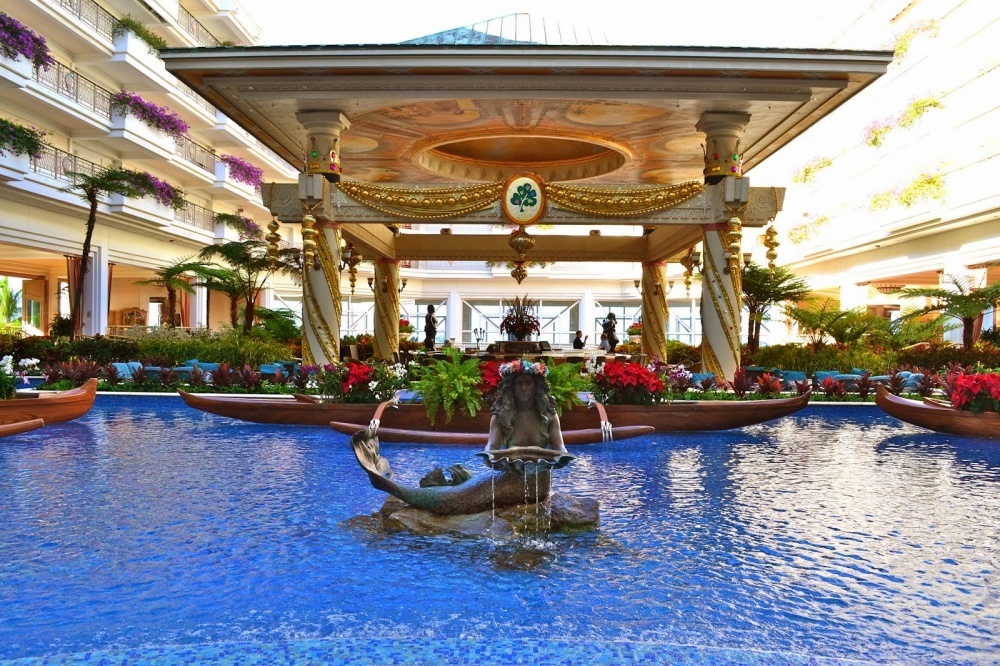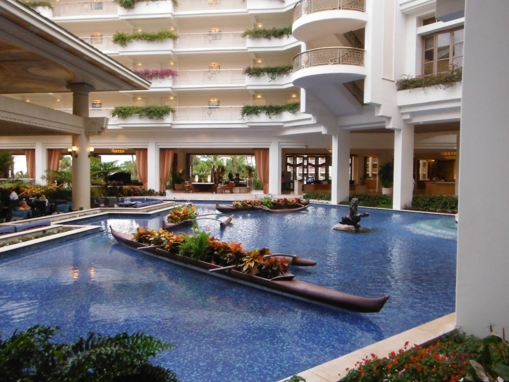 فندق " Grand Wailea" في جزيرة ماوي في هاواي: يحتوي هذا الفندق على حوض سباحة كبير وجميل، قاع حوض مزين بعدد 630 ألف بلاطة تتجمع لتشكل زهرة جميلة، حوض سباحة هذا للبالغين فقط (لا يسمح بدخول الأطفال).
