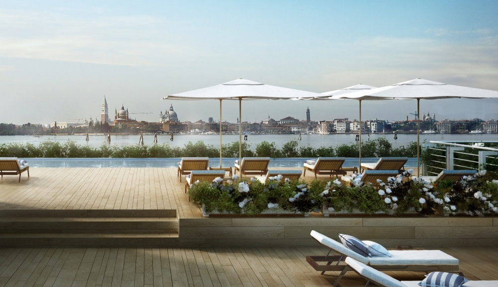 منتجع " JW Marriott Venice" في مدينة البندقية في إيطاليا: تم افتتاح هذا المنتجع في مارس 2015 وهو يوجد في جزيرة " Isola delle Rose" (جزيرة خاصة)، هذا المنتجع يحتوي على حوض سباحة كبير على السطح ويمكنك من هناك مشاهدة ميدان سان ماركو وهو أحد المعالم السياحية الهامة في مدينة البندقية.
