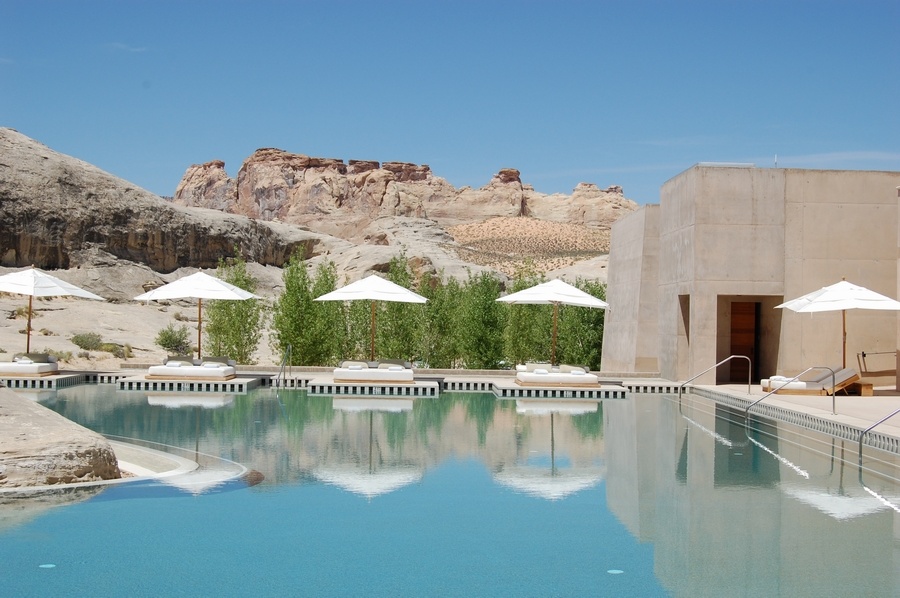 فندق "Amangiri"، منطقة "كانيون بوينت" (Canyon Point)، يوتاه: هذا الفندق يوجد في جنوب ولاية يوتاه وهو مكون من 34 غرفة، وهذا الفندق حرفيا مندمج مع البيئة المحيطة به فالغرف والمباني في هذا الفندق بلون الأرض، والطريق إلى حمام السباحة الكبير في الفندق مرصوف بأحجار جميلة متعددة الأشكال، ويوجد في هذا الفندق منتجع صحي يقدم علاجاً مميزاً للبشرة والجسم مستوحى من الطرق العلاجية القديمة للسكان الأصليين في أميركا (الهنود الحمر).