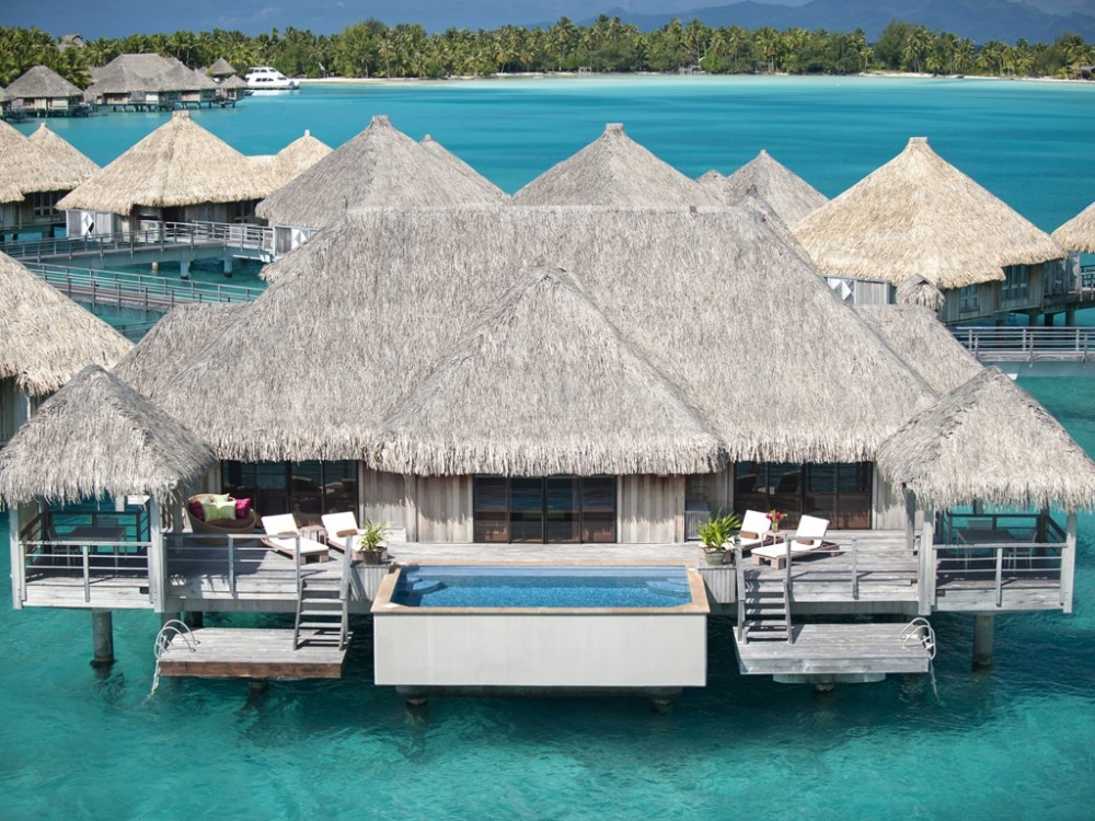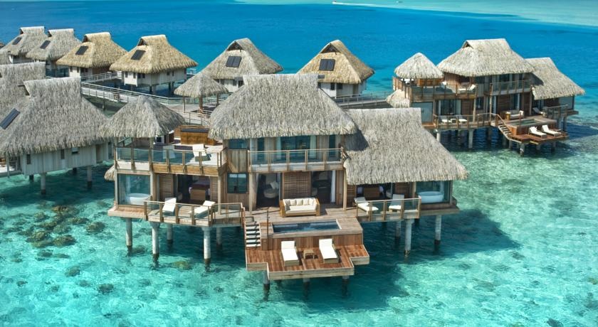 لقد أصبح إسم "بورا بورا" مقترنا بمنازل البنغالو العائمة فوق الماء، وتضم العديد من هذه الفيلات الفخمة العائمة أرضيات زجاجية كواجهة أرضية تسمح بمشاهدة عالم البحيرة تحتها.