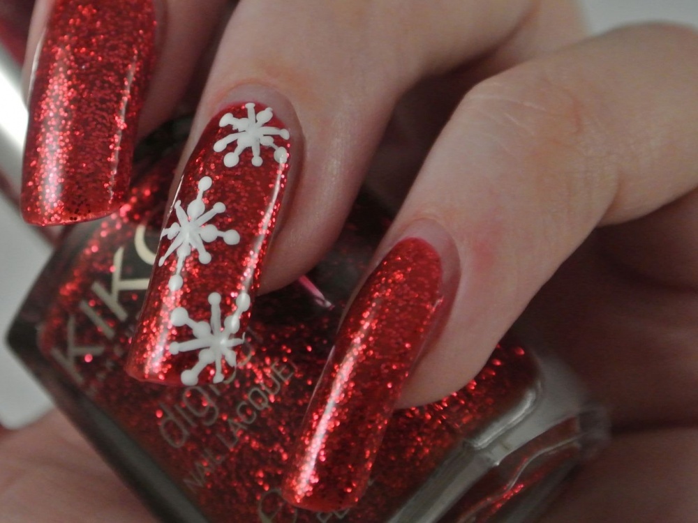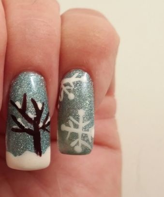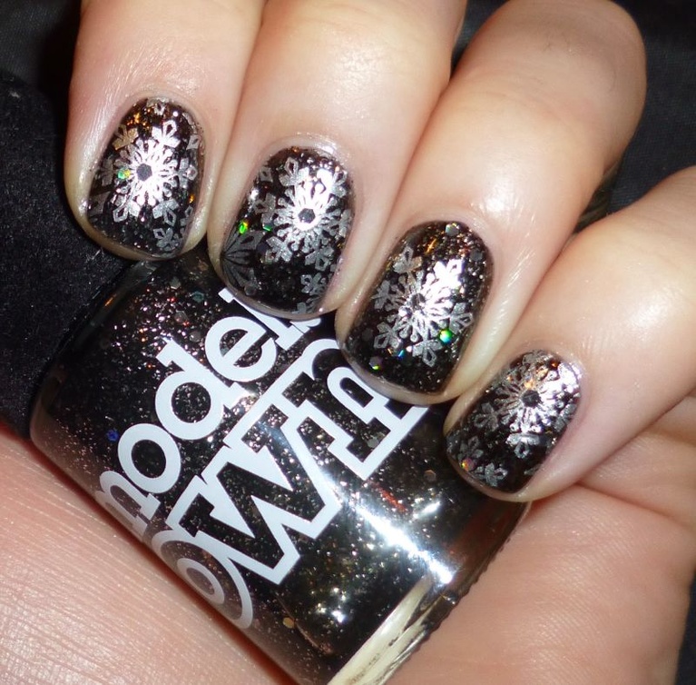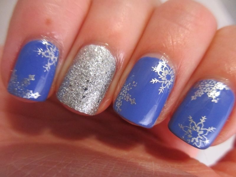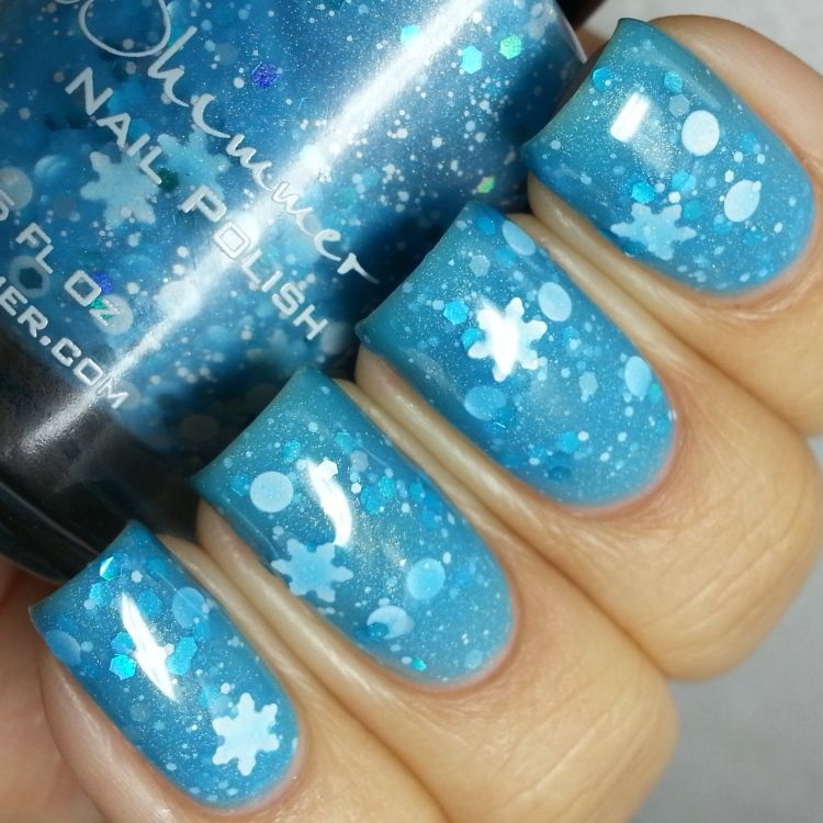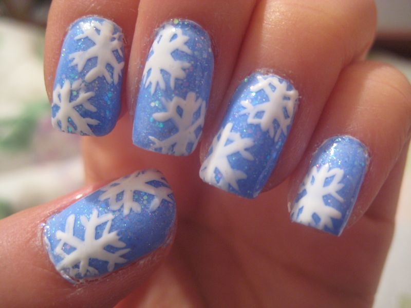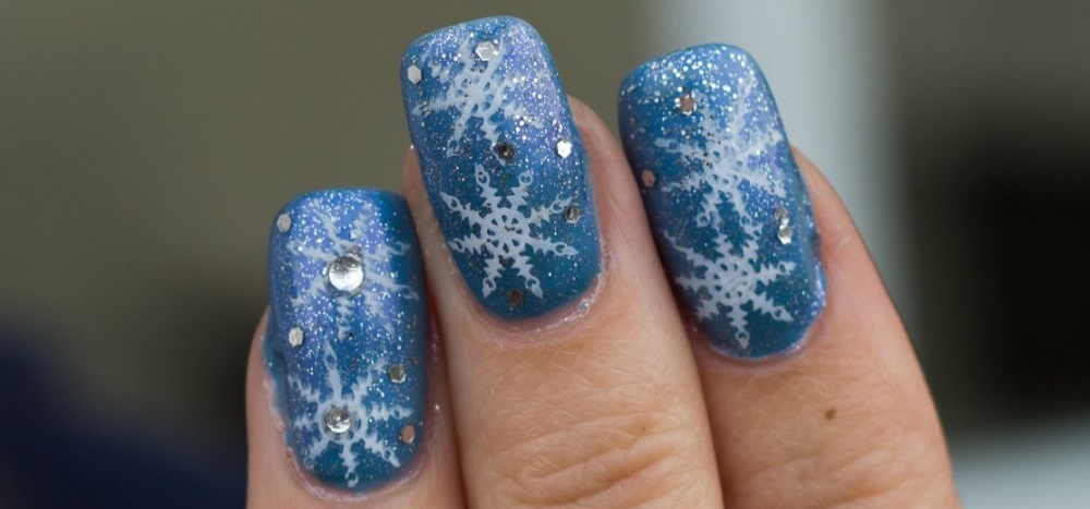 -أو اعتمدي اللون الكحلي البراق المزين برسوم حبيبات الثلج،لإطلالة عصرية لأظافرك.