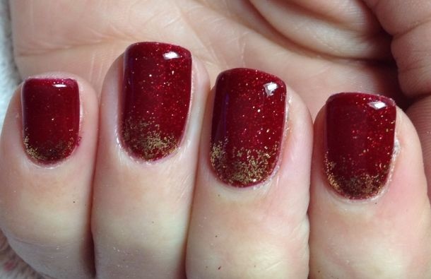 -لا أناقة تضاهي اللون الأحمر القوي البراق مع لمسات ذهبية برّاقة، للحصول على إطلالة كلاسيكية لأظافرك.