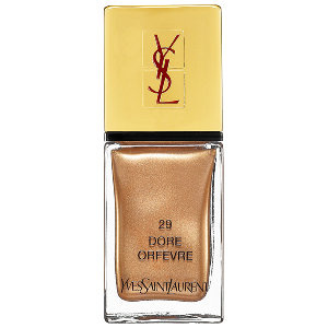 •المعدني Metallic: الفضي والذهبي المعدني طلاء أظافر غريب وعصري، يمنح يداك انوثة عصرية رائعة. بإمكانك تطبيق Stone Jungle من Marc Jacobs Beauty، أو Dore Orfevreمن Yves Saint Laurent.