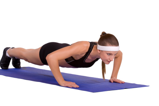 1-الصعود بالدفع إلى أعلى: وللقيام بذلك عليك وضع يدك على سطح مستقر وأوسعي فتح الأكتاف ثم إبدئي بفرد ذراعيك بشكل مستقيم مع خفض المنطقة الوسطى من الجسم بواسطة فرد ذراعيك بزاوية 45 درجة، ثم قومي بدفع ذراعيك حتى تكونا بشكل مستقيم مرة أخرى، وقومي بهذا التمرين العديد من المرات، حتى تحصلي على شكل جيد فرفع اليد يقلل المقاومة ويقلص الجهد المطلوب.