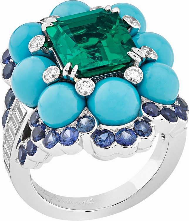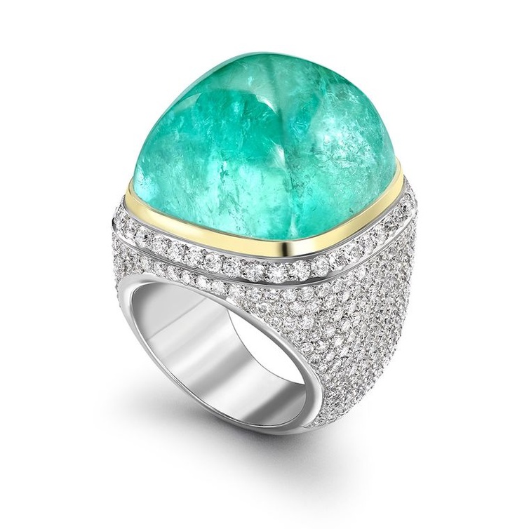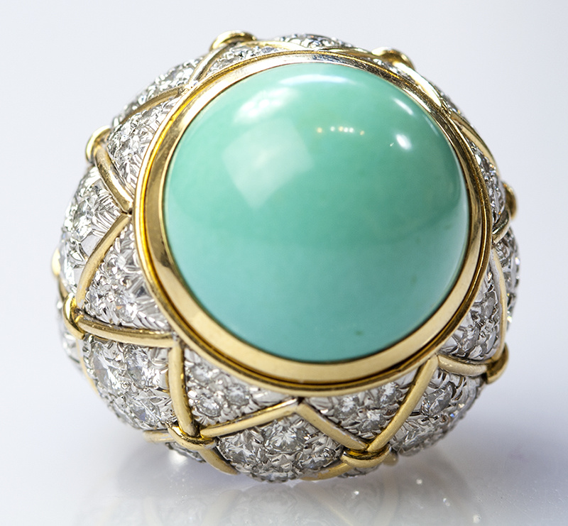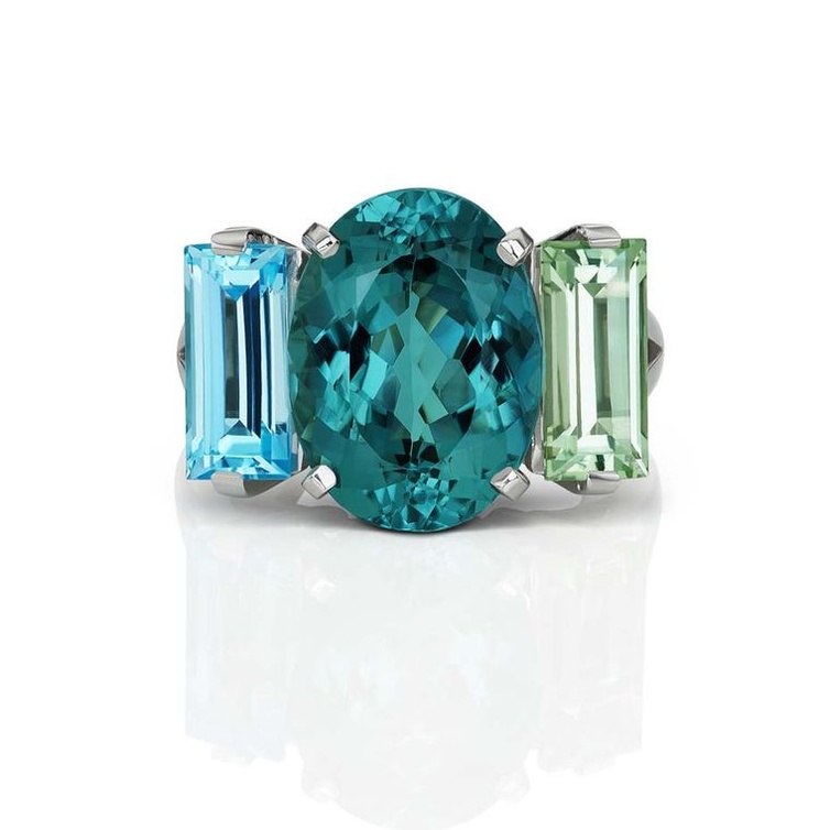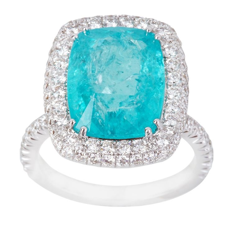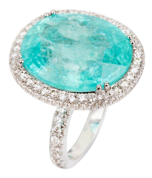 وتندمج الكثير من الألوان القوية والناعمة للأحجار مع هذا اللون الجذاب، ويأتي الحجر الماسي ببريقه وشفافيته في قمّة التناسق مع اللون الفيروزي يليه اللونين الأخضر والكحلي ..
