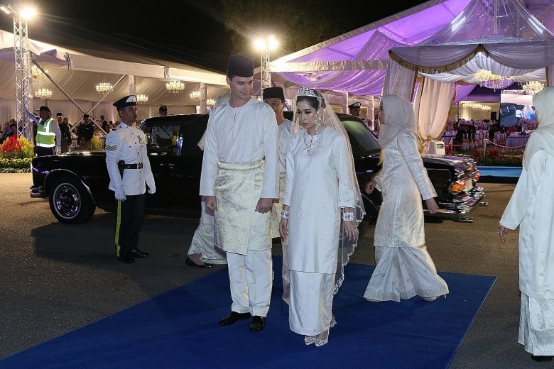 تمشيا مع عادات الزواج منذ قرون في ولاية جوهر الجنوبية ذات الأغلبية المسلمة، قام العريس تقديم مهر للعروس بقيمة 22.50 رينجت ماليزي (حوالي 4 جنيه استرليني)، كما قبل العروسين أيدي والديهم وعماتهم وأعمامهم كعلامة على الاحترام، وأقيم عقب عقد القران احتفال مسائي شهد جلوس العروسين في كوشة العروسين المزخرفة، وقيام ضيوف الحفل برش بتلات الأزهار والماء المعطر والأرز الأصفر على العروسين، وفي نهاية الحفل ظهر الزوجان أمام القصر في ظهورهما العلني الأول كزوجين وشوهدا وهما يلوحان مودعين لضيوف حفلهما البالغ عددهم 1.200 ضيف الذي تجمعوا في حديقة القصر.