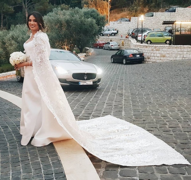 في عام 2012 احتفلت ملكة جمال لبنان لعام 2004 بزفافها من هادي اسمر، ارتدت خلال الاحتفال فستان زفاف اطلت فيه كالاميرات. الفستان كان منفوشا بطبقات متتالية من التول المُطرز ومُزين بفيونكة كبيرة من الساتان تلتف على الخصر وتنسدل على الظهر.