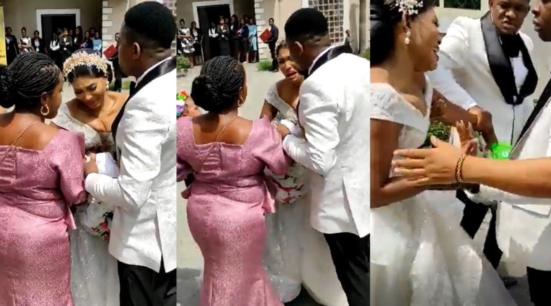 انتشر مؤخرا على مواقع التواصل الاجتماعي، مقطع فيديو لعروس بفستان الزفاف الأبيض وهي تنهار باكية في يوم حفل زفافها، بعد رفض قس إقامة مراسم الزواج في حفل الزفاف.