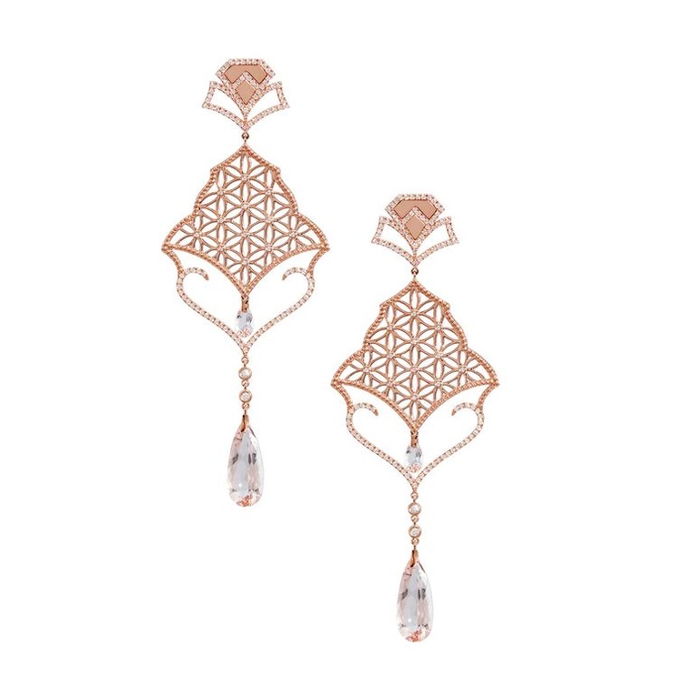 بالنسبة للأقراط؛ اخترناها من "شيلدون بلومفيلد Sheldon Bloomfield"، بحلة متدلية مبتكرة من الذهب الأبيض وتضم أحجار المرغنيت والماس. لدينا أيضا أقراط من "ديونيا أورسيني Dionea Orcini" بجاذبية ساحرة تتجلى في ستايل تخريمي مشبك تم ابتكاره بمهارة عالية من الذهب الوردي مع قطع المرغنيت بلون عسلي.
