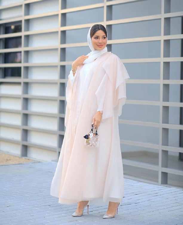 اخترنا مجموعة عبايات متنوعة من اطلالات فاطمة حسام، منها عباءة باللون الزهري مع أكمام مميزة كشكش من Abaya. Almaraikn نسقتها مع اللون الابيض.