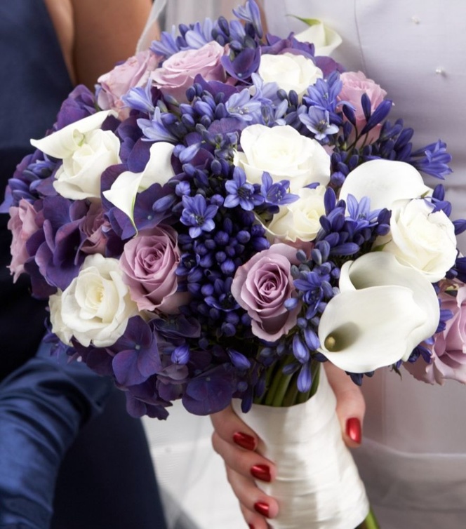 اللون البنفسجي هو لون راقي ،ويتميز بتدجاته المنوعة للغاية من الفاتحة الى الداكنة ،وفي باقة العروس بالامكان دمج تدرجات مختلفة منه واضافة اللون الأخضر عليها لإعطائها لمسات مشرقة وحيوية .