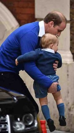•للأب، لا تترك مهمة إخبار الطفل بقدوم أخيه أو أخته لأحد، بل عليك أن تقوم بهذه المهمة بإحتوائك لطفلك وأن تصطحبه في جو بهيج ومفرح لتخبره بأنكما ذاهبان لرؤية الضيف الجديد للعائلة، وهذه ما فعله الأمير "وليام" فلم يترك المربية تقوم بحمل الأمير والصغير، بل قام هو بذلك بمشاعر الأبوة الحنونة ليستقبلا سويا الأميرة الصغيرة.