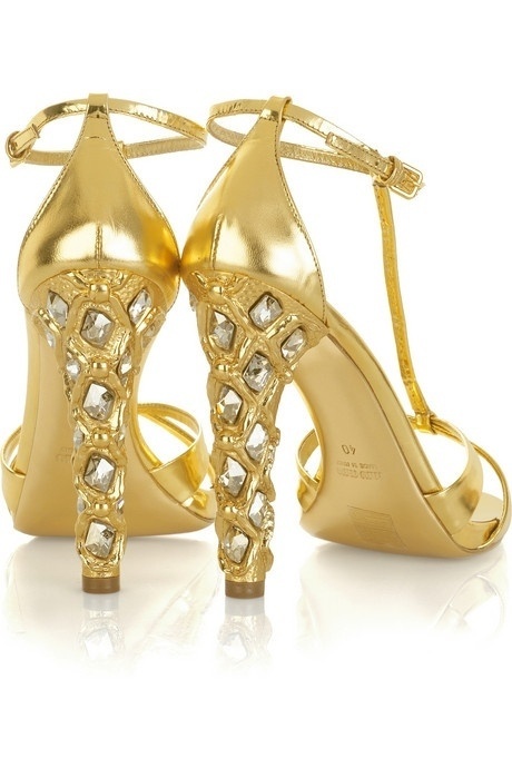 -ومن Miu Miu إخترنا حذاء ذهبياً ينسجم بلونه وتصميمه مع الفستان. أناقة لا مثيل لها في هذ الحذاء المزين بالكريستال.