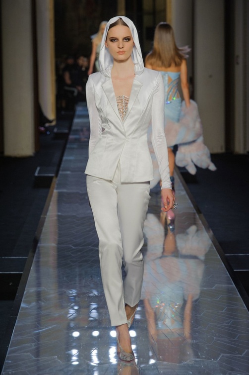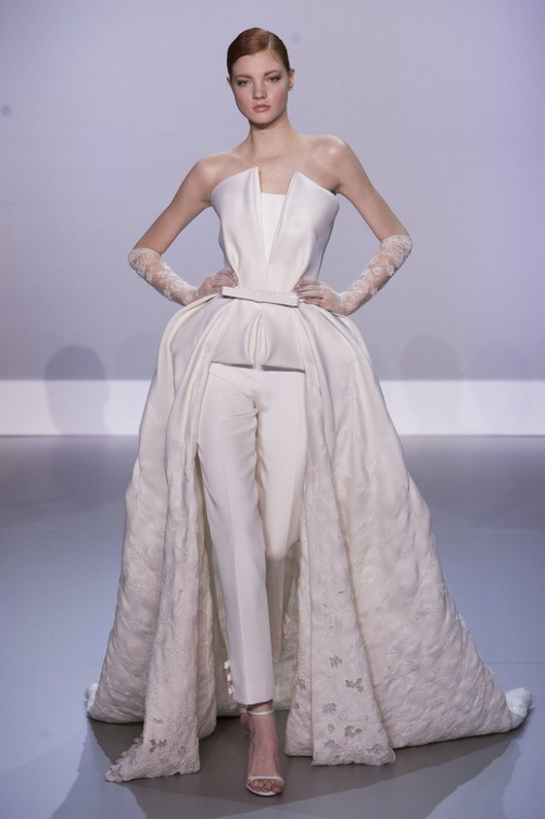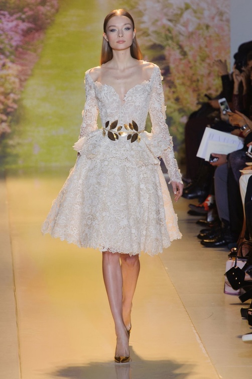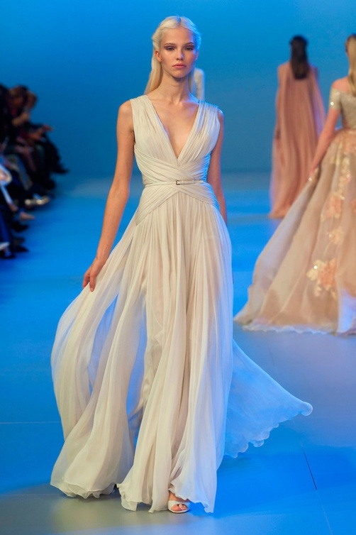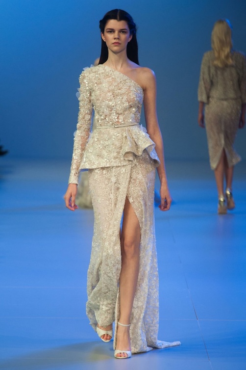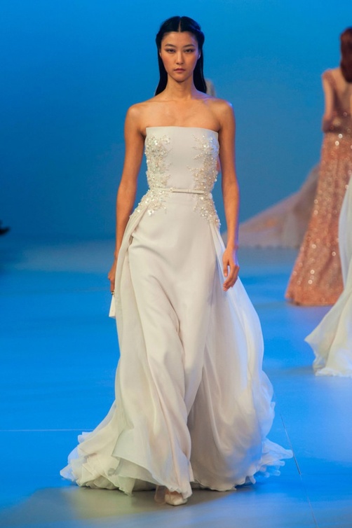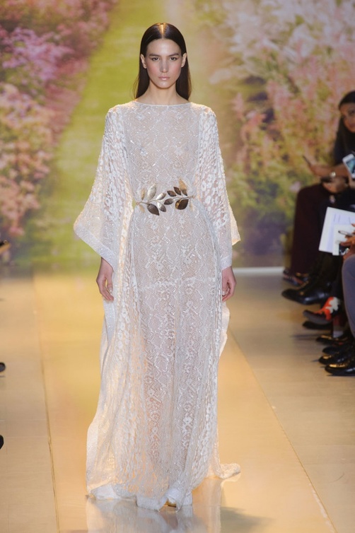 لم نكن بحاجة لمشاهدة الطرحة على رؤوس العارضات لكي نصنّف الفساتين اللواتي إرتدينها في أسبوع الموضة للكوتور 2014 كفساتين زفاف. ذلك لأن جميع دور الأزياء التي عرضت مجموعاتها، لا بل قطعها الفنيّة، نذكر منها طوني ورد، إيلي صعب، زهير مراد، Atelier Versace وChanel نجحت في تحقيق جميع مقومات ملابس الزفاف من فساتين وبذلات وغيرها من الإبتكارات. ولم يخرج أحد من حضور العرض (جمهور، عارضات، نقاد وصحافيون) إلا وارتسمت في ذهنه صورة هذه الفساتين التي تهادت كالغيمات البيضاء في سماء ربيعية.