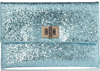 أما من تصميم Anya Hindmarch وقع الخيار على حقيبة زرقاء براقة غاية في التميز، بينما الحذاء فكان من خيار Cranberry.