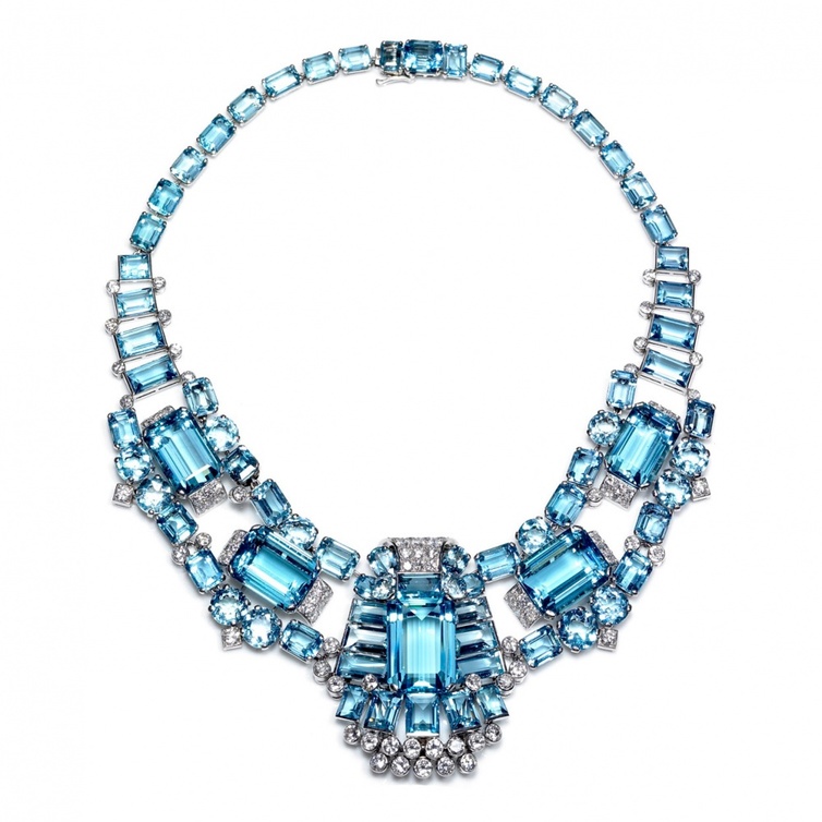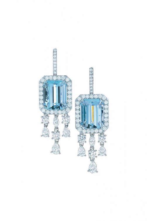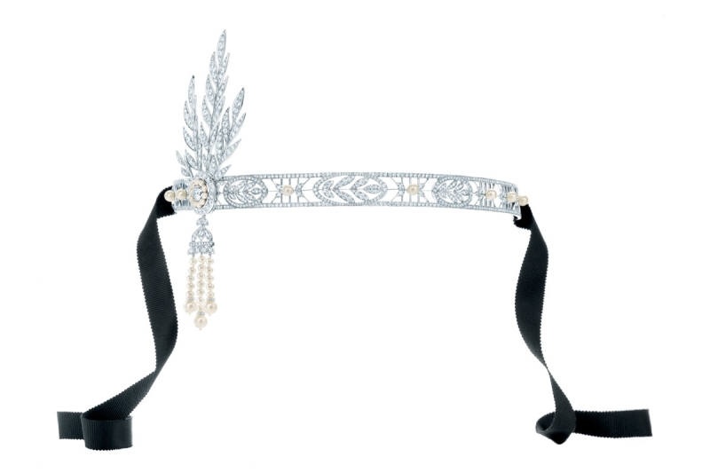 أما لإضفاء لمسة راقية عليه إخترنا لتسريحتك أكسسواراً مميزاً  مزيناً بالماس واللؤلؤ الأبيض من  Tiffany. ومن الدار نفسه وقع الخيار على أقراط ماسية باللونين الأبيض والأزرق، وسواراً عريضاً مميزاً بالماس الأزرق الفاتح.