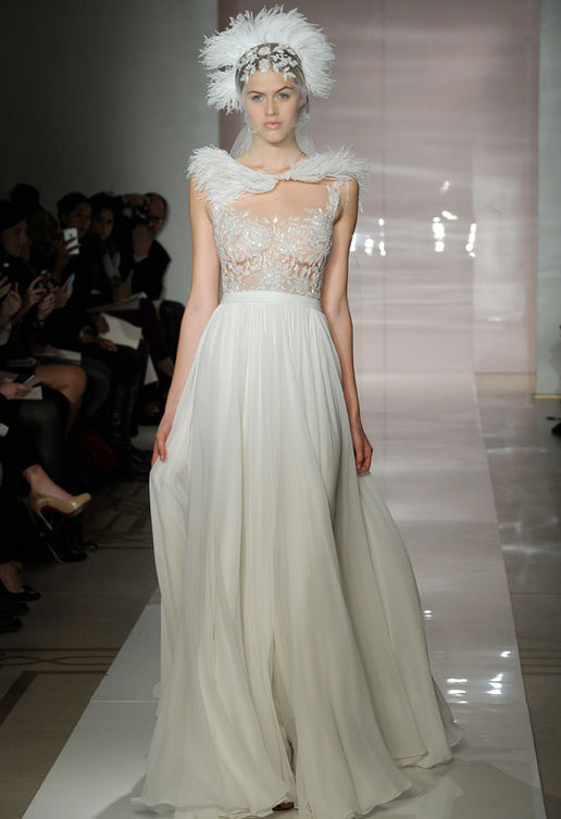 الفستان الذي إخترناه قمّة في النعومة والأناقة يحاكي هدوء وجمال العروس بأسلوبه الخاص وهو من مجموعة خريف شتاء 2014.