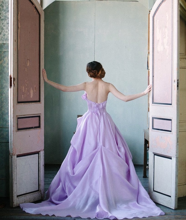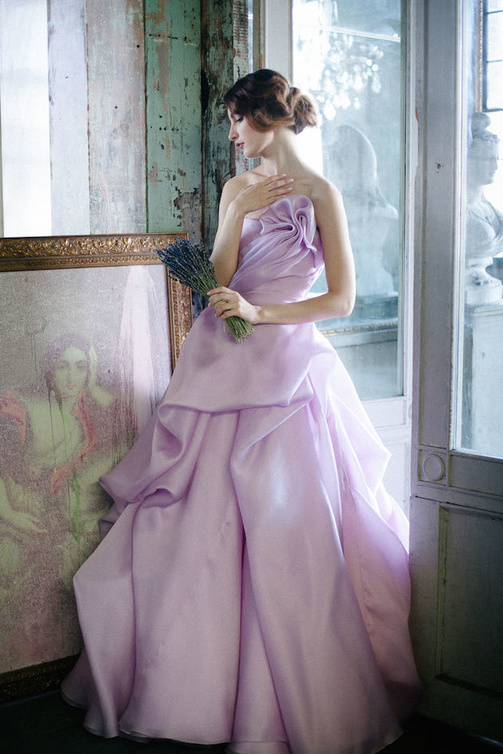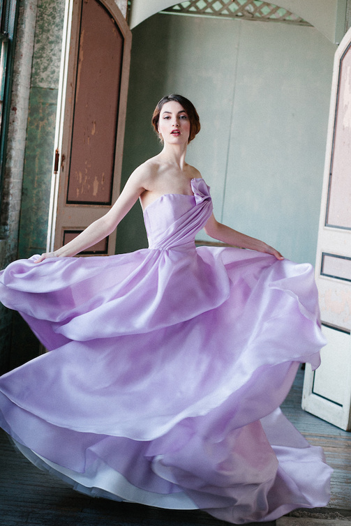 أما أبرز فساتين هذه المجموعة الذي لفت الأنظار بتصميمه الرقيق والبسيط والراقي في نفس الوقت هو الفستان باللون البنفسجي الفاتح الذي يكسر تقليد اللون الأبيض بلونه الجذاب الذي لا يقاوم... إنه لون الخزامى الناعمة التي تحاكي كل معاني الشفافية والجاذبية.