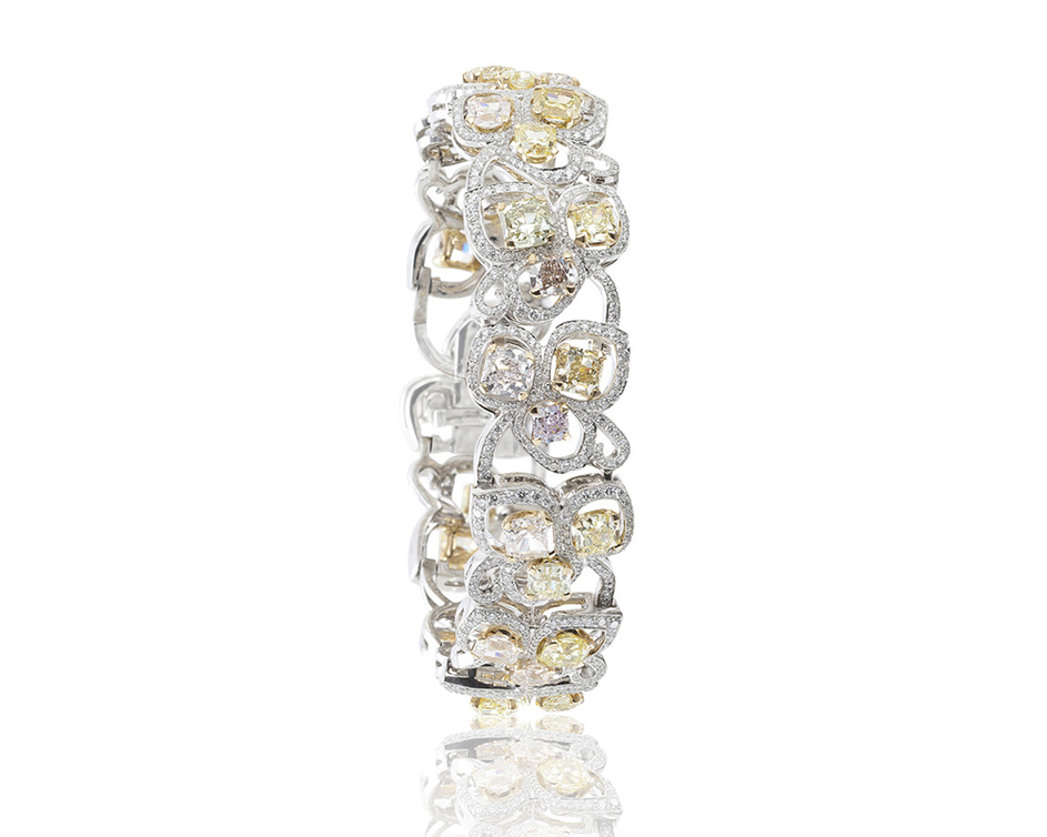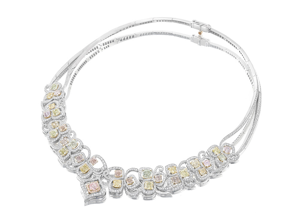 ولتكتمل هذه الإطلالة الأنيقة لا بد أن تختاري أجمل المجوهرات، من هنا وقع الخيار على طقم كامل من مجوهرات Boodles Aurora، والطقم مؤلف من القلادة والأقراط والسوار والخاتم ،وهو مصنوع من البلاتين الأبيض ومزين بحجارة ناعمة الألوان من الأصفر الى الزهري والعسلي والزيتي.