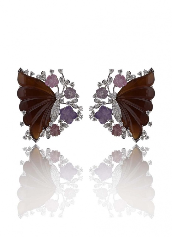 ولإضفاء لمسة أنيقة وفاخرة قمنا بإضافة أكسسوارات الفراشة التي جائت متناغمة مع الإطلالة ككل. لدينا أقراط "الفراشة ميراري Mirari Butterfly Pavilion " وتضم أزهارا بألوان الباستيل وماسات متلألئة إضافة إلى أجنحة الفراشة باللون الأحمرالغامق مما استكمل جمالها. لدينا أيضا قلادة "شاويش Shawish " وتتألف من فراشات من الماس الأبيض والأسود والياقوت الوردي.  وأخيرا اخترنا حقيبة "ألكسندر ماكوينAlexander McQueen " بزركشة رائعة للغاية تجسد شكل الأزهار ما يجعلها حقا قطعة ستتناغم بكل تأكيد مع إطلالتك الرومانسية الرائعة.
