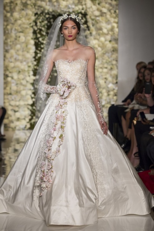 إخترنا بداية فستان الزفاف من "ريم عكرا"؛ رائع و مميز سواء من حيث التصميم أو القصة أو الزخرفة التي تزركشه مما سيبرزك أميرة. انطلاقا من هذا الفستان المتألق اخترنا صندل "جيمي تشووJimmy Choo " من الجلد البراق بلون ذهبي.