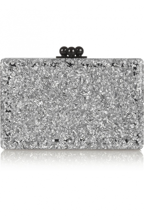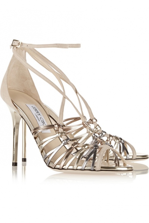 لدينا صندل "جيمي تشو Jimmy Choo" بتصميم جميل بواسطة أحزمة من الجلد المعدني ملفوفة يدويا على شكل عقدات؛ و حقيبة من "إيدي باركر Edie Parker" على شكل صندوق مستطيل إكريليكي يتألق ببريق لامع مزدوج الألوان. جاءت القطعتان في تناغم تام أبرز أجمل ما في الإطلالة بأسلوب متألق ورائع.