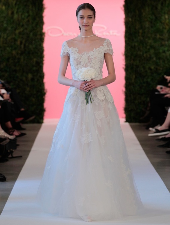 فستان الزفاف من "أوسكار دي رنتاOscar de la Renta " بقماش دانتيل أبيض و ستايل مزين بحلة الأزهار؛ انطلاقا من هذا الفستان الرائع جاء اختيارنا لأكسسوارات تتناسب معه بشكل مثالي، لتجعل منك أجمل عروس.