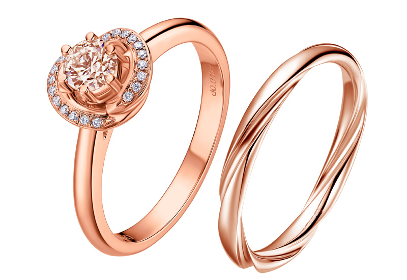 -أما الخاتم فهو من الذهب الوردي من توقيع Aurora، ويأتي بقطعتين متكاملتين لتضفيا جمالاً إستثنائياَ على أصبعك.