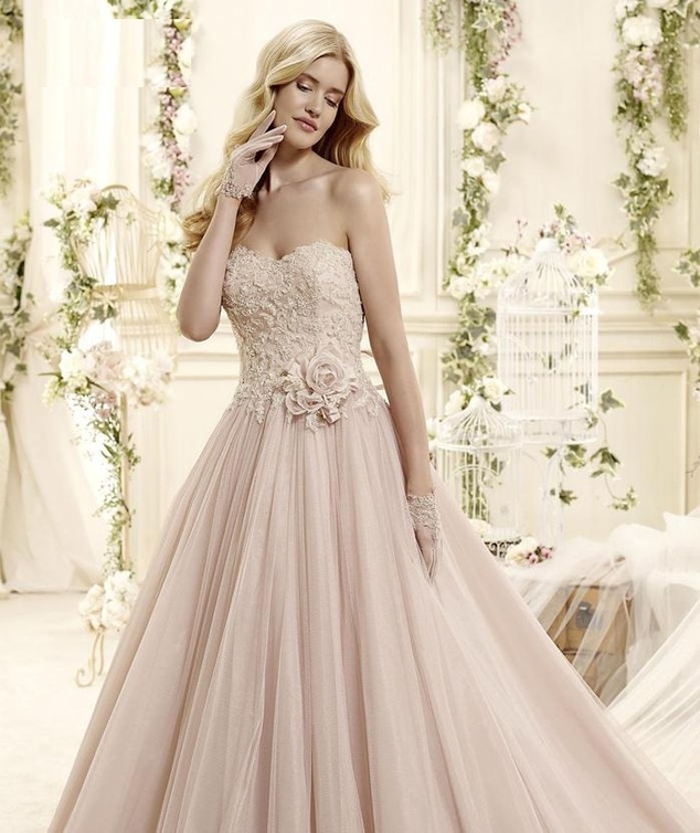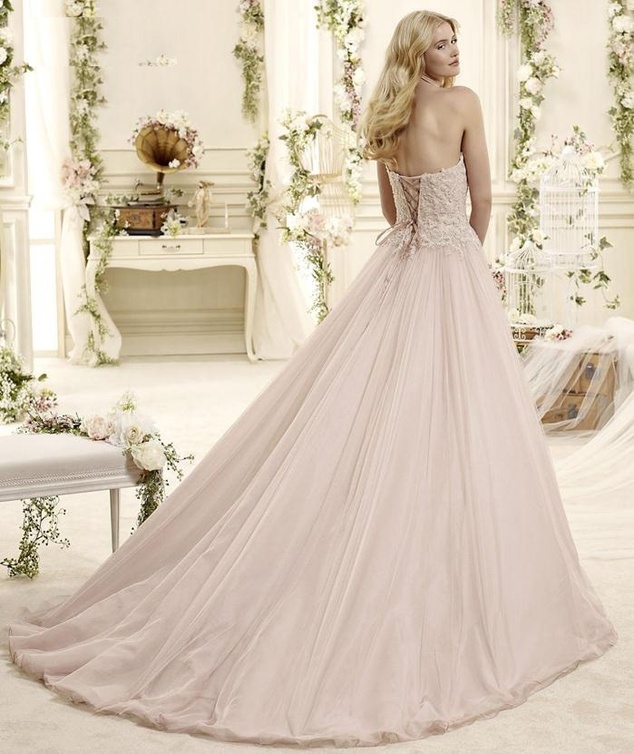 -فستان زفافك هو من المجموعة الجديدة لربيع 2015 للمصممة Colet Nicole، وهو قمة في البساطة والجمال، يتميز بلونه الوردي الحالم، وبقصة تحاكي كل معاني الرقة والأنوثة... القسم العلوي منه مطرز بورود ناعمة للغاية، أما الخصر فمزين بوردة كبيرة ناعمة.
