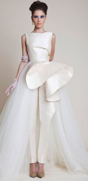 لديك ذوق غير تقليدي عزيزتي العروس وتهوين التميّز ولا تخشين المخاطرة واختيار فستان يعبر عنك وعن شخصيتك؟ ما رأيك أن تحصلي على إطلالة إستثنائية باختيار موضة التايور، السروال الأبيض أو الـJumpsuit لنهار عرسك..هل فكرت في هذا من قبل؟